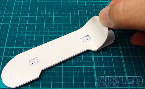 | 6.表面のハンダが終わったら、基板裏面に付属の専用両面テープを貼り付けます。 |