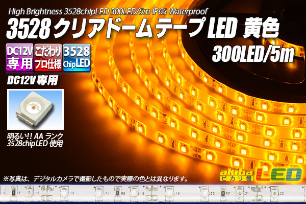 3528テープLED 60LED/m クリアドーム 黄色 5m(300LED) 5,980円