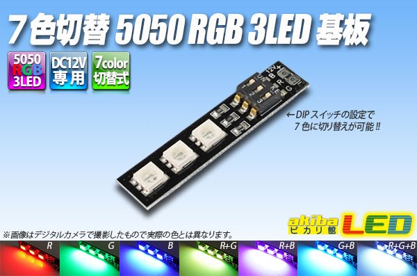 7色切替 5050 RGB 3LED基板 DIPスイッチの切り替えにより、7色の発光が可能なRGB3LED基板となります。 とても軽く小さい基板なので、ドローンへの設置にも対応出来ます。 7色切替 5050 RGB 3LED基板 380円/個 仕様 本体サイズ(約):47×10×4.7mm 入力電圧:DC12V 注意 ※防水ではありません。水のかからない場所でご利用ください。 ※配線の半田加工が必要となります。 ※保証は、商品到着後7日以内の初期不良の物に対して行います。 いかなる場合にも商品代金以上の保証は出来かねますので御了承の上お求め下さい。 |
