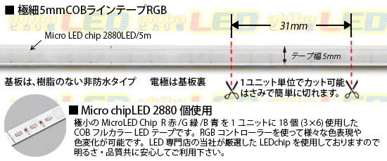 ■極細 5mm COBラインテープLED RGB 2880LED/5m 5,800円/本